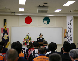 長野市の一日消防長として、消防士さんたちの前でカウラ事件について講演 |