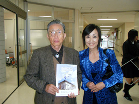 (左)講演中のひとコマ (右)小学校時代の恩師(国語科)・竹内次雄先生が聴講に来てくださいました |