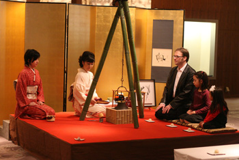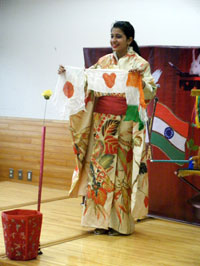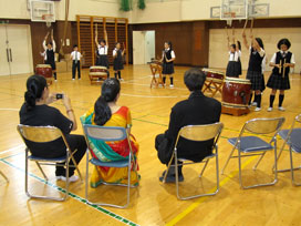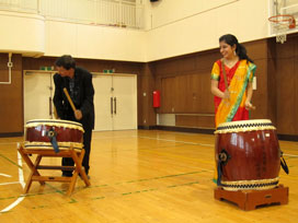 マジックショー終了後は、英語によるジニアとの質疑応答あり、和太鼓の演奏あり。