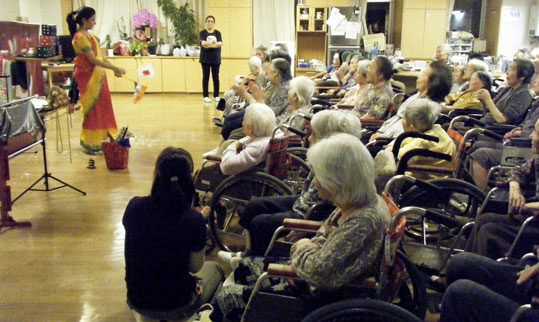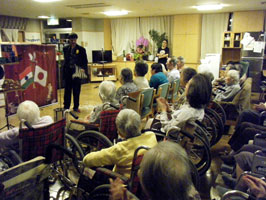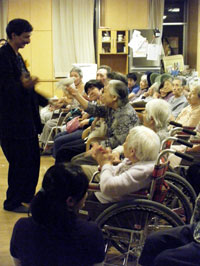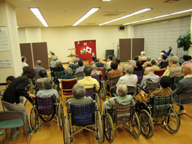 さて、昨日と今日、2日つづけて老人ホームに伺って私が感じたことは、入居者の皆さんが思いがけないほど集中してステージを注目してくださったということ。