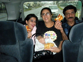 [左]スーパーから車に戻るなり、いきなりパンを食べ始めた3人。お腹が空いていたようです(笑)