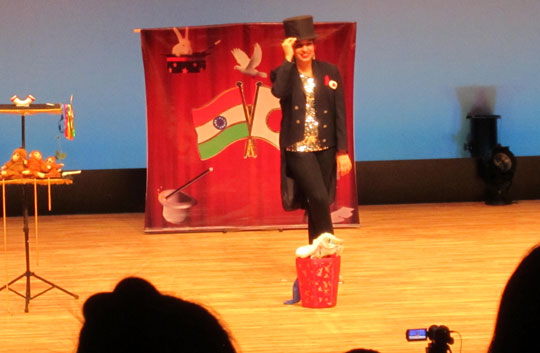 ミッションスクールのウルスラ学院では英語教育が盛んで、実は今回のマジックショーも「英語の授業の一環」としての位置付けとのことでした。ジニアとの英語による質疑応答を含めた交流の時間も用意されており、なかなかユニークなイベントになりました。