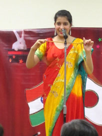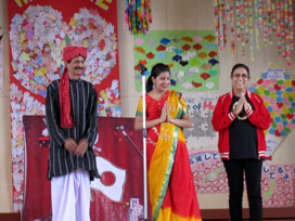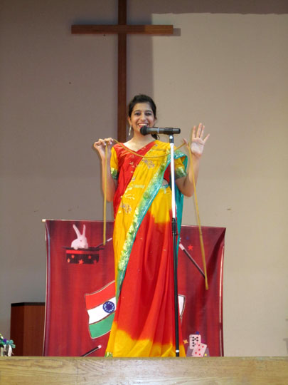 ショーの後はジニアとご両親をステージでご紹介し、インドの言葉で「ダンニャワード」(ありがとう)と挨拶! |