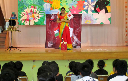 仙台市立岡田小学校にて、ジニアとパパ(メリー・ブンガラ氏)の共演