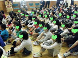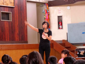私も最初にちょっとだけ、「英語ができると何がいいの?」というお話をさせていただきましたが、小1から小6までの全員にわかるお話をするのは難しいですね。話を小1に合わせたので、小6の子には物足りなかったかも。 |