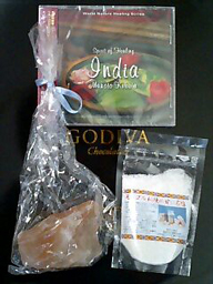インドのヒーリングミュージックCD(music by 久保田麻琴)も、GODIVAのチョコも、ヒマラヤの岩塩も、お花も、(写真には写っていませんが)クリスタルビーズのブレスレットも、バーバリーのハンカチーフも、本当に嬉しく頂戴いたしました。心から感謝申し上げます♪ |