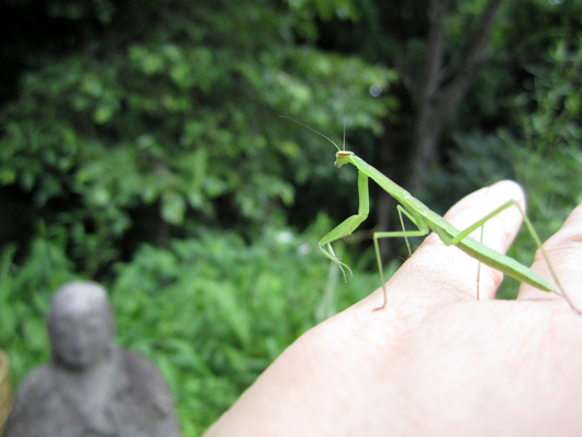 例年、お地蔵さんの周辺(頭の上も)は、かまきりの人気スポットのようです