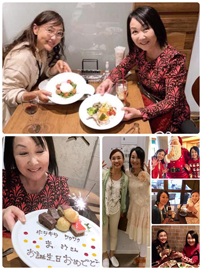 ファッションデザイナーで高校の一つ先輩の岡正子さんが、昨夜、長野市内にあるイタリアンのお店で半月遅れのバースデーを祝ってくださいました。