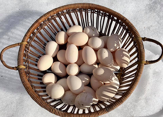 (カゴの下は一面の雪ですよ!) |