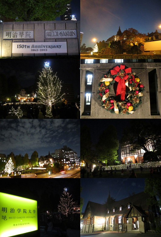 しかし、実は私、点灯式の直前ギリギリまでお茶大におりました。私が密かに「神」とお呼びしている博覧強記のT先生の博士論文指導を受けてものですから、ツリー点灯の瞬間には間に合わず、明治学院に到着した時には既に大小のクリスマスツリーにイルミネーションが点っていたというのが本当のところなのですが。