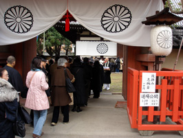 儀式を終えてお帰りになる天皇の勅使(右の黒い