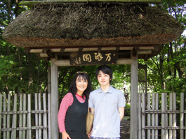 (左上)マンズワインのワイナリー敷地内にある日本庭園入口に立つ息子と私
