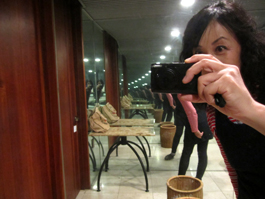 (下2枚)石の教会にて。右の「永遠に続く鏡の部屋(?)」は、石の教会の有名なトイレです♪