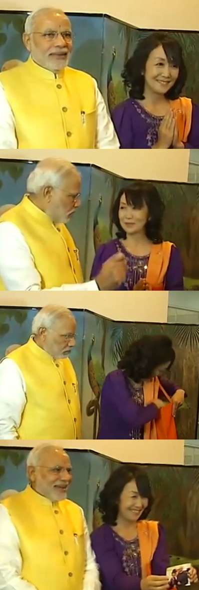 3枚目: モディ首相 「(皆さんに)お見せしたら?」