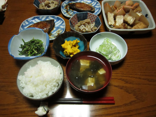 母の手作り夕食は素朴な美味しさ(それにしてもハーゲンダッツに桜味が出ていたとは!) |