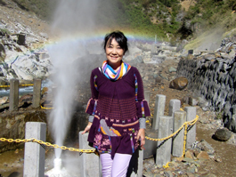 (右下の写真、私の頭上に見えるのは噴泉にかかる虹です) |