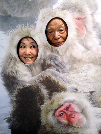 温泉に入る猿の顔ハメ(都内某所にて) |