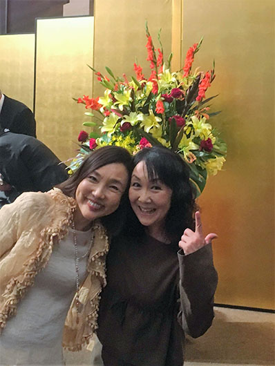 同窓生でファッションデザイナー、大の仲良しの岡正子さんと |