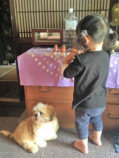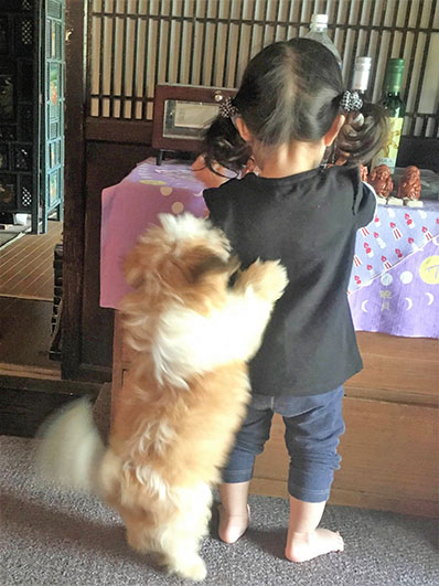 孫娘と遊んで欲しそうにうずうずしているクースケ