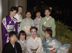 表千家不白流大師範・荒井宗羅師のもと、茶道 の奥深さにすっかり魅了されております。来年 の目標は“小習免状”の取得。写真は、荒井先 生(前列右から2人目)、私(後列左端)と社中 |