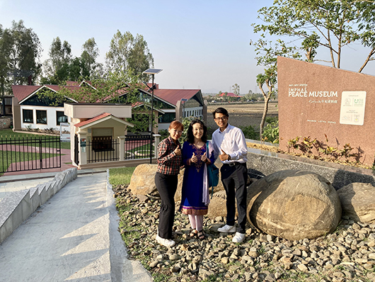 2019年にオープンした平和博物館の前で。