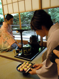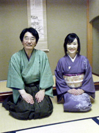 愛いでしょ? (右)お菓子を取っていらっしゃる荒井先生は、もちろん正客でいらっしゃいます