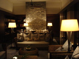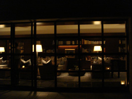 ホテルには贅沢なライブラリーのスペースがありました。右の写真は、外から見たライブラリーの風景