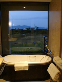 バスルームの外はゴルフ場です。見晴らし最高。日本にいることを忘れます