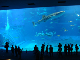驚くほど大きな角を生やした水牛(ビオスの丘)と、水槽のなかを悠々と泳ぐジンベイザメ(美ら海水族館)
