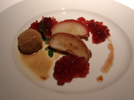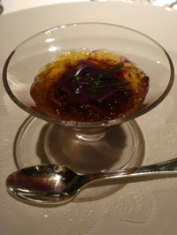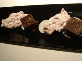 (左)焼きりんご+ハイビスカスのゼリー+コーヒー風味のアイスクリーム (右)自家製のお菓子