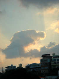 ふと空を見上げたら、雲が正座して深々と頭(こうべ)を垂れていました |