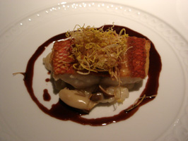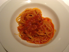(左)トマトソースのスパゲティー (右)近海鮮魚のソテー 沖縄県産あわび茸とボルチーニのリゾット添え