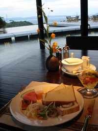 (注/さすがに飲んでいませんよ(笑)) (右)翌朝の朝食 |
