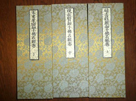 (右)『三千仏経巻』(右より順に、過去の千仏、現在の千仏、未来の千仏の御名を記したお経) |