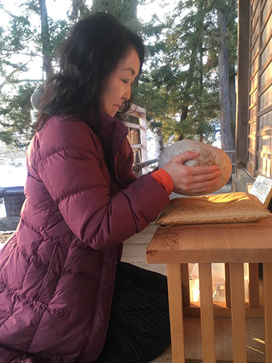 ただし石ですから会話はできません(笑)。その代わりに、石がみずからの重さを変えて「軽く」なったり「重く」なったりしながら質問(願い事)に対する答えを占ってくれる由。
