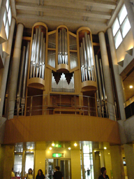 この美術館は建築家の磯崎新(いそざき・あらた)さんがデザインなさったそうで、入り口を入ってすぐのホールにパイプオルガンが設置されているのが目新しい感じでした。