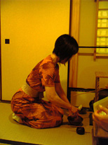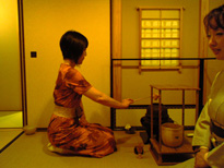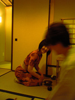 ※実は、今までこういうふうに自分のお点前を客観的に見るというチャンスがなかったのですが、このたび新しく入門なさったアートディレクターで株式会社ツインズ代表の鈴木正英さんが、気を利かせて一部始終を連写してくださったんですよ。鈴木さん、どうもありがとうございました。非常に勉強になりました♪ |
