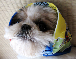 さっそくポケモンハンカチで頬かむりするブー