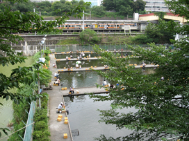 市ヶ谷駅脇の橋の上から外濠を眺めると、そこには釣り堀(市ヶ谷フィッシュセンター)が! |