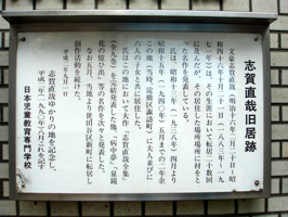 かと思えば志賀直哉が一時期住んでいた家の跡地があったり。