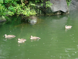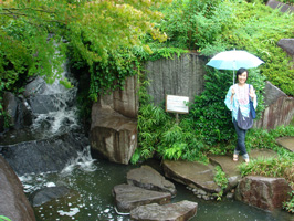茶室の前には、風雅なお池が。雨の中、カモたちが元気に泳いでいました |