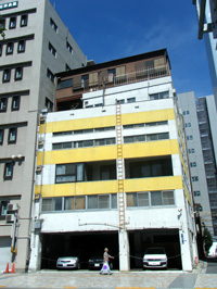 しかし、いざという時は外壁に取り付けられた長〜いハシゴを降りるのかと思うと……かなり勇気が要ります(右下の写真参照)。 |