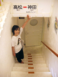 入り口はフェリー乗り場風。胸のベロ出しブースケにも注目! |