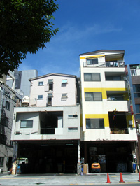 ビルの上にさらに一戸建ての家が建てられた、ダブル・アイスクリームっぽいビル。