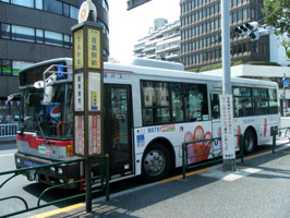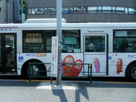 目黒駅前には、なんとキューピーの「たらこ」が描かれたバスが停車中でした。うわっ、乗りたいっ!