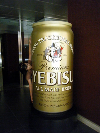恵比寿駅周辺はヱビスビールの広告だらけです。駅前のビアステーション(右写真)を