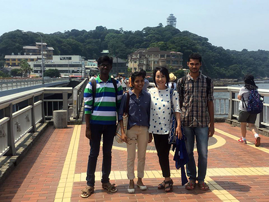 江ノ島をバックに、IIT(インド工科大学)ハイデラバード校から来日中の学生たちと。