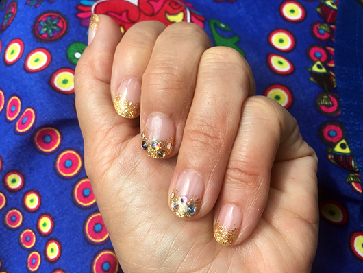 衣装が派手めなので、ネイルも負けないようゴールドを基調に♪ |