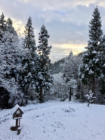 おとといの朝、山小屋で目覚めカーテンを開けたところ、外は一面の銀世界でした。