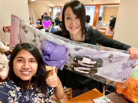 仕事の関係で来日。浴衣・下駄・作り帯の三点セットをプレゼントしました。